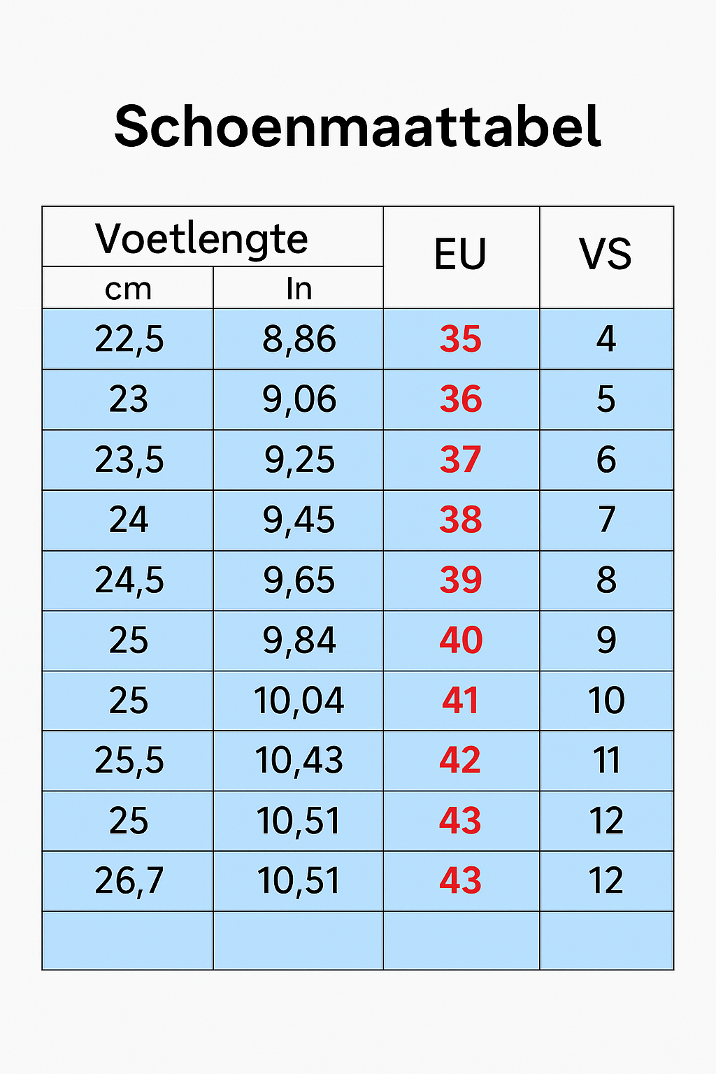 📏 Valt op maat twijfel je? Kies je standaard schoenmaat.